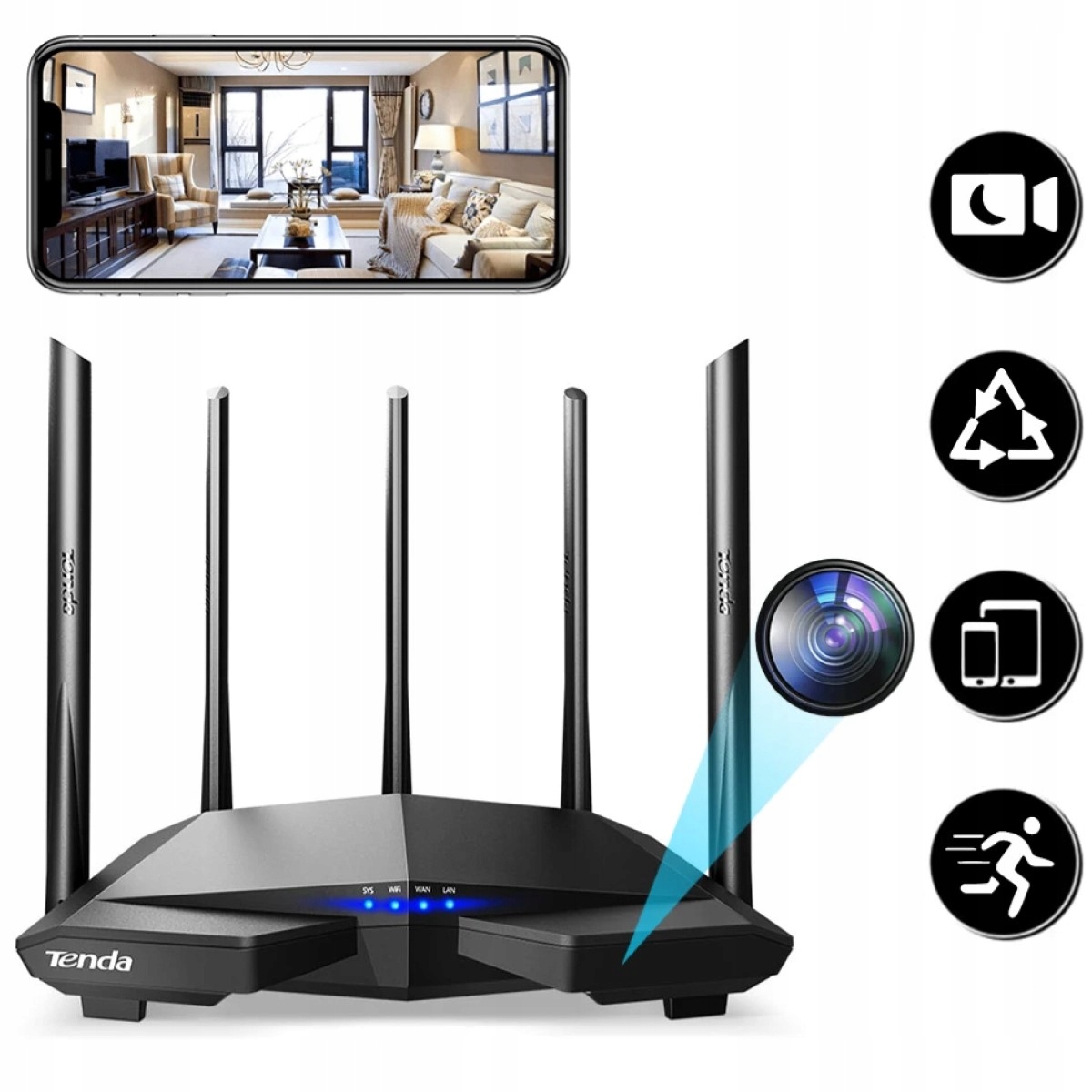 - Urządzenie 2w1 – router oraz ukryta kamera